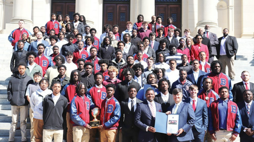 Sen. Jason Barrett recently presented Senate Resolution 12, commending the Brookhaven High School Panthers Football Team for their Class 5A State Title win.