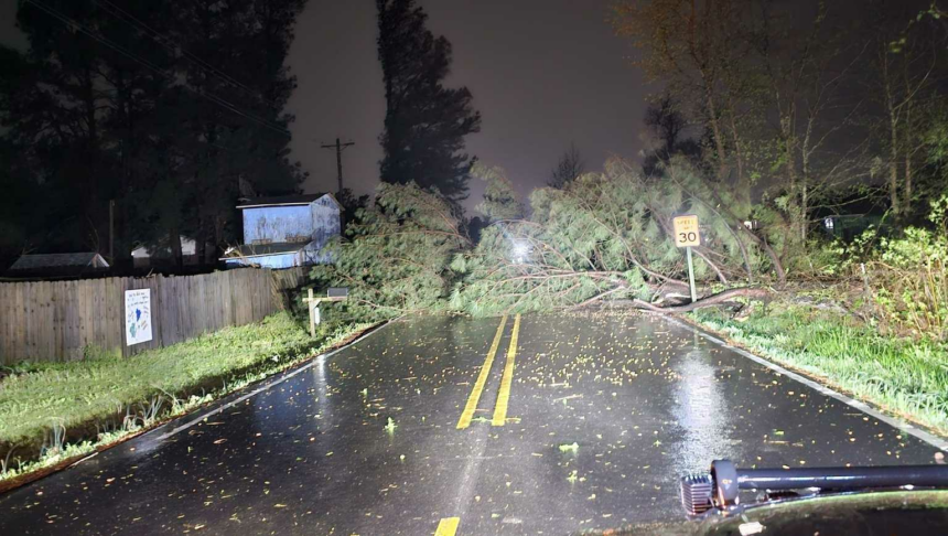 This image shows a tree down on Sylvan Hills Road in Van Buren.