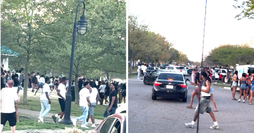 In the videos sent by Stephanie Turlington, droves of people are seen walking away from the park at Buckroe Beach. Hampton police vehicles were seen with their lights flashing.
