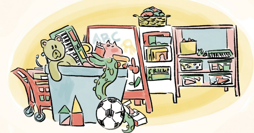 A million magnetic tiles scattered across the living room. Stuffed animals piled high in the playroom. Outgrown baby gear taking up space in the closet.