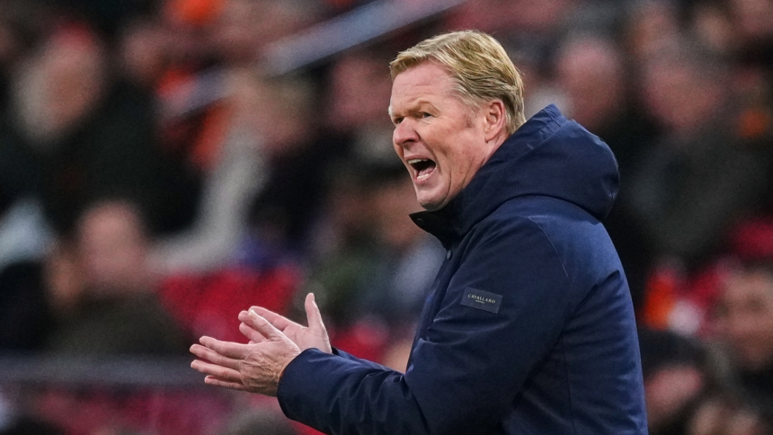 Netherlands' coach Ronald Koeman reacts during a World Cup 2026 group G qualifying soccer match between Netherlands and Lithuania in Amsterdam, Netherlands, Monday, Nov. 17, 2025. Credit: AP/Peter Dejong