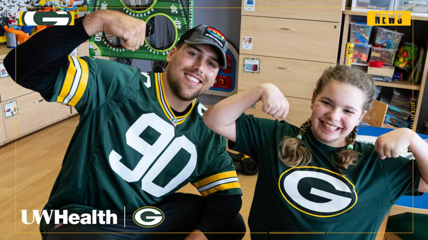 The announcement was made by several representatives from the Packers and UW Health at American Family Children’s Hospital in Madison, with Packers players Lukas Van Ness and Luke Musgrave in attendance to visit with patients at the hospital following the announcement.
