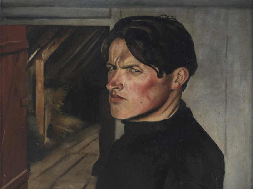 Take Curt Querner’s Self-Portrait with Stinging Nettle (1933), in which the scowling painter holds the toxic plant between two pinched fingers. Sure, there’s an easy analogy there for the threat of National Socialism. Querner was a dedicated Communist responding to a Party meeting in a bowling alley in Dresden, on January 25, 1933, that had ended in a shootout with police, leaving nine of his comrades dead and 11 seriously injured. But it would be a mistake not to admire the painterly aspects of this work. Querner was a student of the great Otto Dix and this work shares his talent for strange yet deeply empathetic facial expressions. His hands are in an odd but defiant position and his clothes may not fit but there’s no doubt how he’s feeling. Behind him the door opens onto an attic—in fact the attic of his parents’ house in the village of Börnchen, where the picture was painted—as vague as his look is sharp, contributing to the precise dread of the New Objectivity movement.
