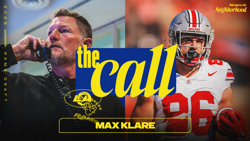 Watch as Ohio State tight end Max Klare gets the call to be drafted by Los Angeles Rams general manager Les Snead and head coach Sean McVay.