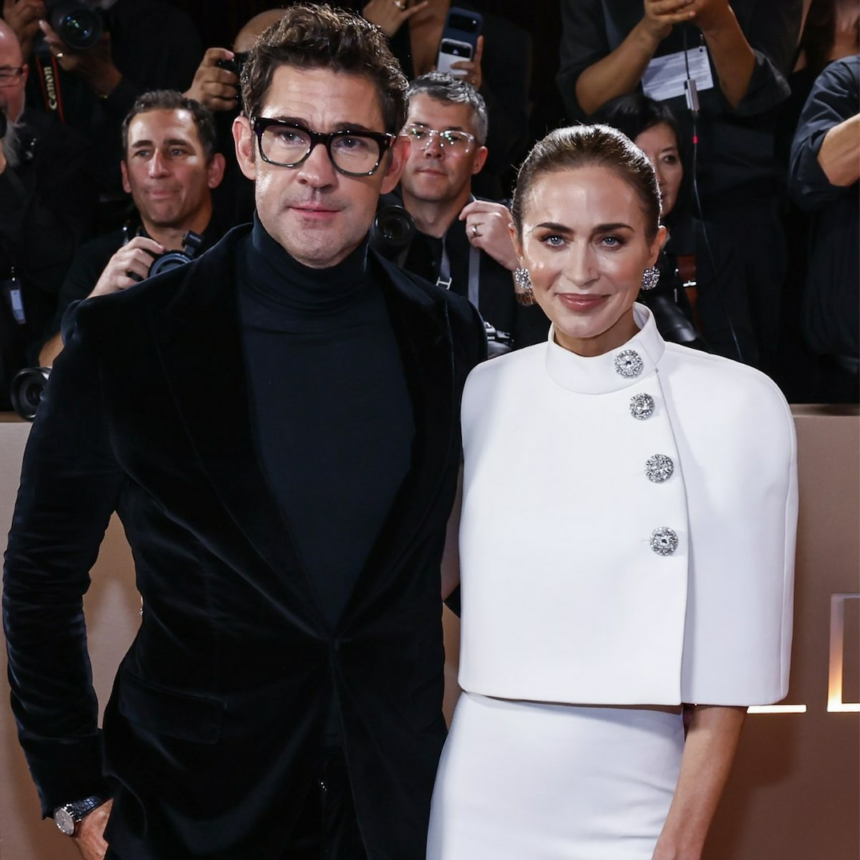 Indeed, on the award show’s red carpet, John sported a black turtleneck with a suit jacket while Emily donned a white dress and cape. The Devil Wears Prada 2 star—who shares daughters Hazel, 12, and Violet, 9, with the The Office actor—admitted that she found the final look quite dashing.
